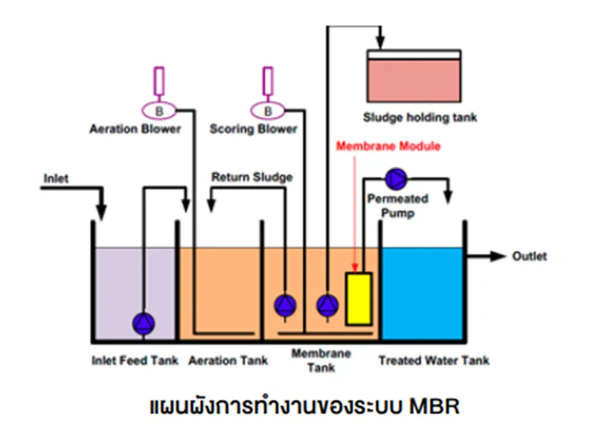 The Company implemented two pilot projects using innovative wastewater treatment technologies to improve its wastewater management systems during 2022–2023, namely at The Walk Shopping Center, Ratchaphruek Branch, and Kaset Nawamin Branch. These projects utilized the Moving Bed Biofilm Reactor (MBBR) and Membrane Bio Reactor (MBR) systems for wastewater treatment. The MBR system combines the use of microorganisms to remove dissolved waste in water with filtration through a membrane with 0.4-micron pores, serving as a filter for treated water. This process is a form of activated sludge wastewater treatment.