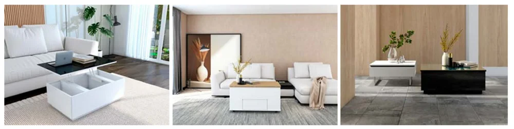 All 8 SKUs of the Living category height-adjustable coffee tables are designed to allow customizable height adjustments to support a variety of daily activities, such as dining or working on the sofa ergonomically. They help reduce fatigue, promote good health, and enhance convenience, featuring a locking system for safety during use.